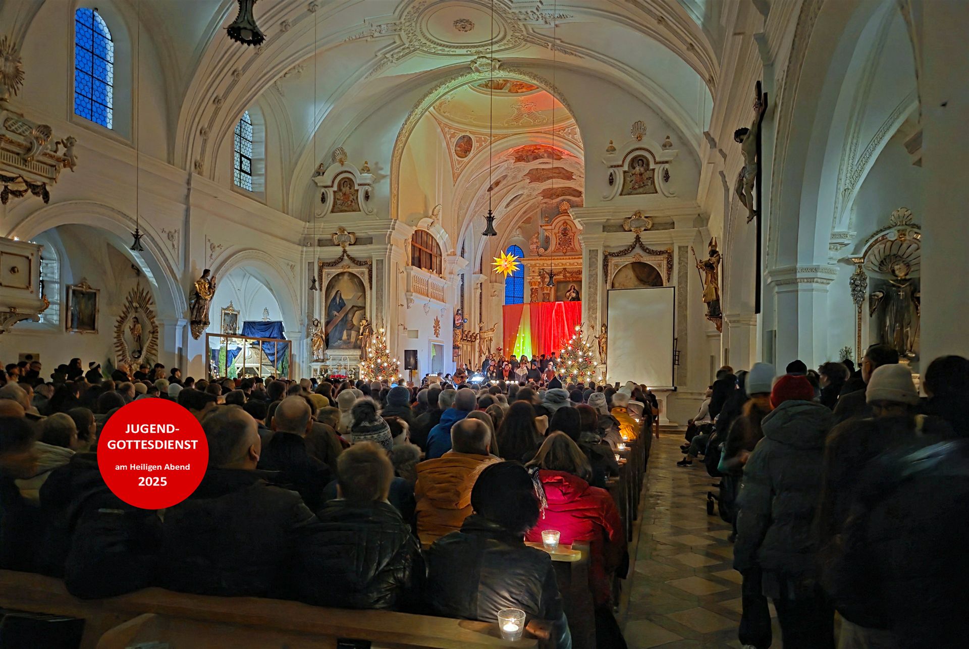 Einen stimmungsvollen Jugendgottesdienst am Heiligen Abend feierte die katholische Pfarrgemeinde Türkheim. Der große Zuspruch zeigte sich darin, dass die Kirche bis auf den letzten Platz gefüllt war und sehr viele auch stehen mussten. Musikalisch eindrucksvoll gestaltet wurde der Gottesdienst vom Jugend-Weihnachts-Projektchor und mit vielen Instrumentalisten unter der Leitung von Connie Grimme. Jugendliche aus der JUKA (katholische Jugend) bereicherten die in Kerzenlicht getauchte Kirche mit Impulsen und Gebeten. Die Fürbitten wurden dabei eindrucksvoll in Form eines modernen Raps vorgetragen. Diakon Gerhard Rummel griff in seinen berührenden Gedanken das Thema „Weihnachten in unserer Realität“ auf. Weihnachten beginne nicht im Perfekten, sondern mitten im Leben. Die Geburt Jesu erzähle von einem Gott, der Mensch wird und in unsere Wirklichkeit kommt – in Enge, Unsicherheit und den Alltag. Nicht Glanz und Leistung stünden im Mittelpunkt, sondern ein Kind in der Krippe: verletzlich und zugleich voller Würde. „Das Licht von Weihnachten löst nicht alle Probleme, aber es schenkt Hoffnung und Orientierung“, so Diakon Rummel. Es lade dazu ein, menschlicher miteinander umzugehen, achtsam zu sein und den Blick für andere nicht zu verlieren. So berühren sich an Weihnachten Himmel und Erde – mitten in unserer Realität. Mit alten und neuen Liedern, Gedanken und Gebete begeisterte der Jugendgottesdienst am Heiligen Abend um 17:07 Uhr auch in diesem Jahr die Herzen der Menschen.