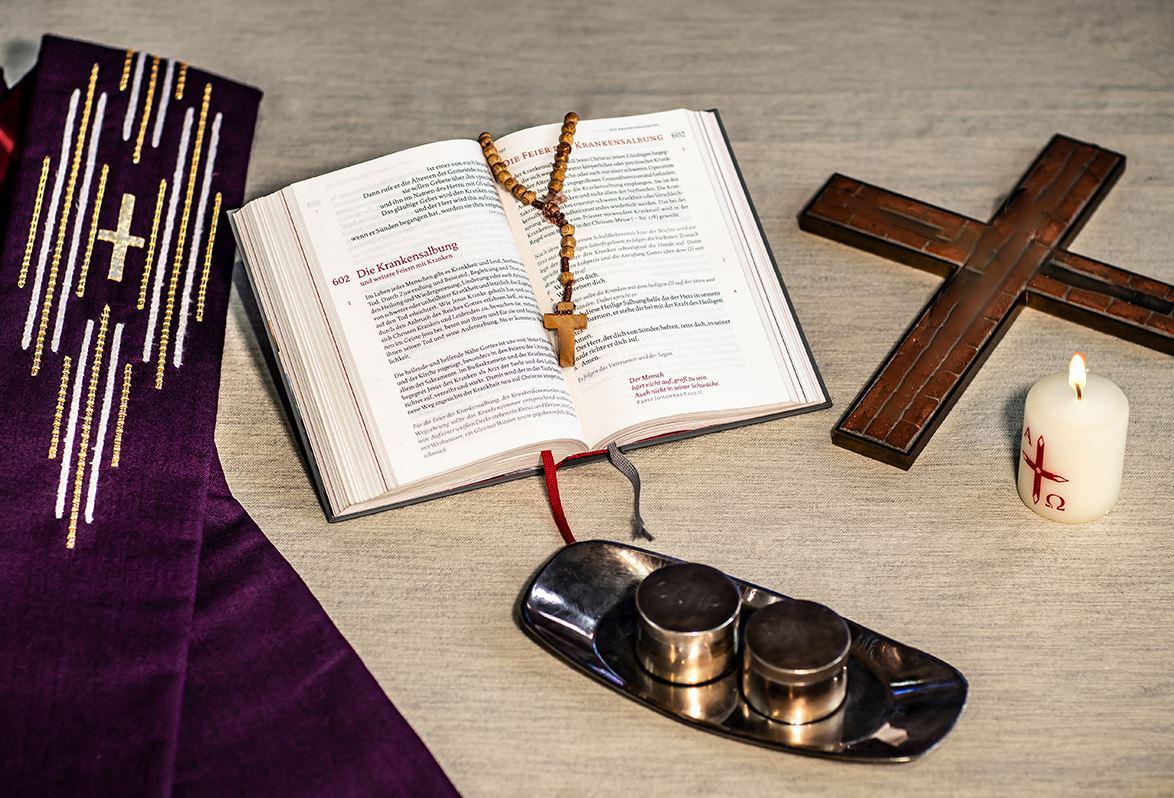 In Zeiten der Krankheit und des Alters stärken die Krankensalbung sowie der Empfang der Eucharistie. Wenn der Kranke oder die Angehörigen es wünschen, besucht einer unserer Geistlichen Sie zu Hause oder im Krankenhaus, um das Sakrament der Krankensalbung zu spenden. Einmal im Monat besteht die Möglichkeit, dass Ihnen die Krankenkommunion nach Hause gebracht wird. Bitte melden Sie sich dazu im Pfarrbüro.